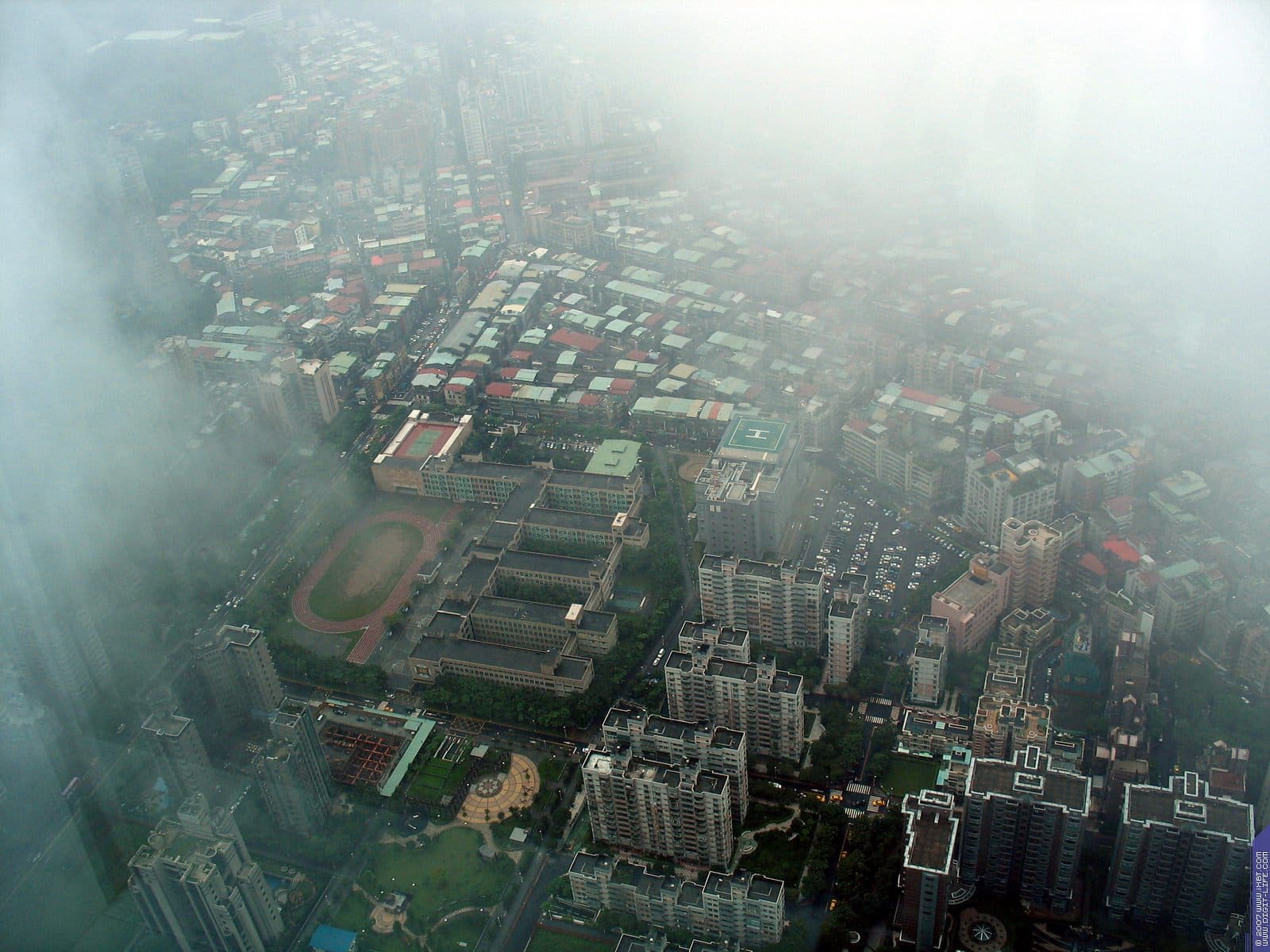 | В общем, несмотря на то, что вчера мы уже побывали на обзорной площадке, мы снова туда заскочили, чтобы посмотреть на Тайбей уже сквозь облака. | ![]() |
