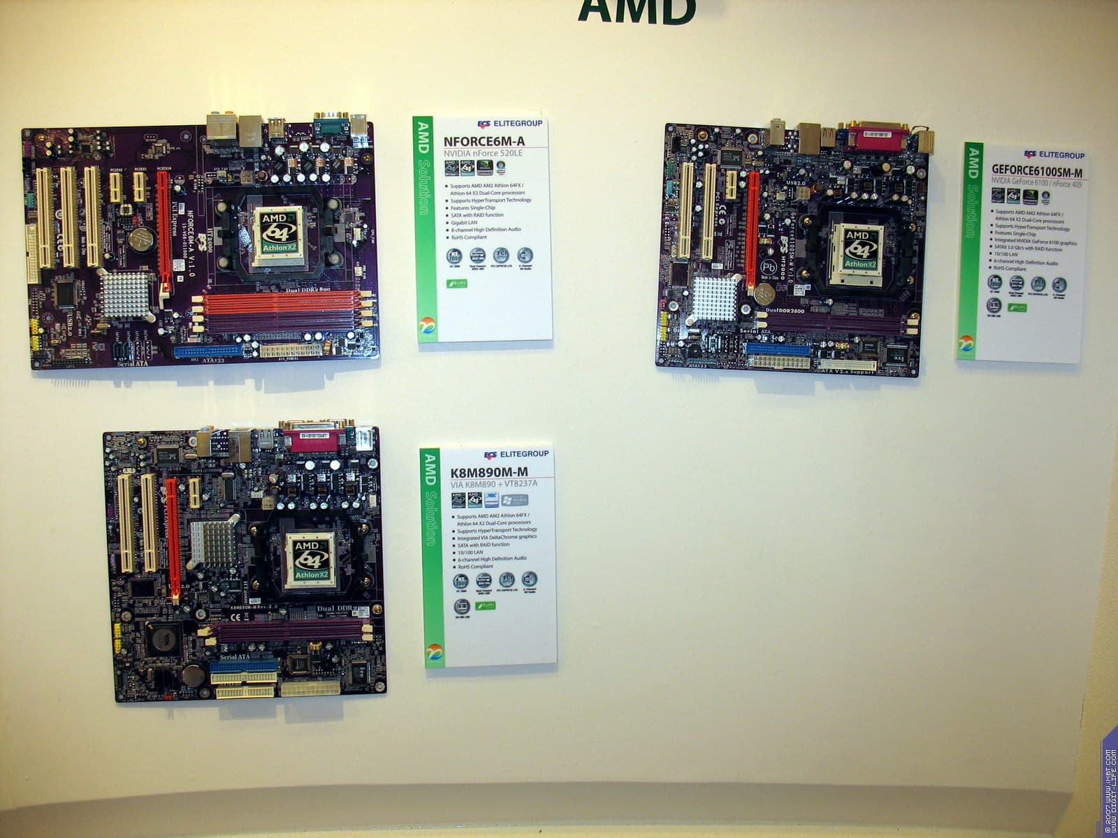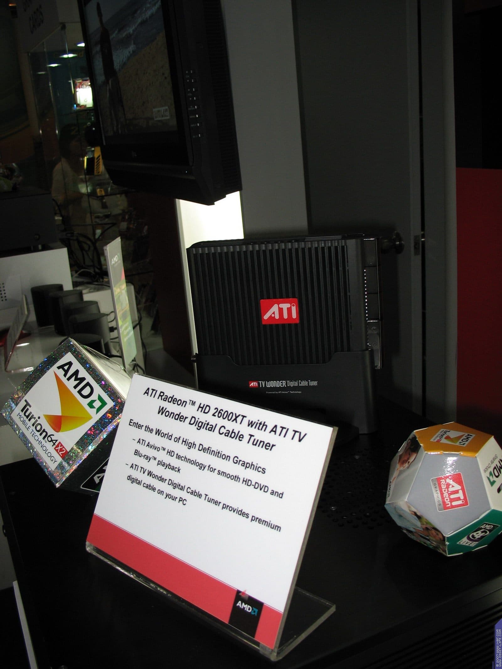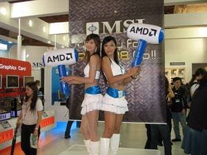То, что ATI теперь внутри AMD, просто кричало с каждого угла огромного стенда. Примерно 50% всей экспозиции было посвящено продуктам ATI. Впрочем, все известно, новинок нет, поэтому даже нет смысла перечислять, какие видеокарты демонстрировались. Разумеется, вся серия RADEON HD.