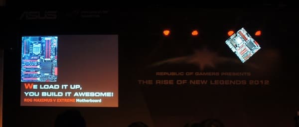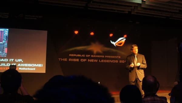 Представление продуктов проходило в очень сильно затемненном зале с символикой Republic of Gamers.