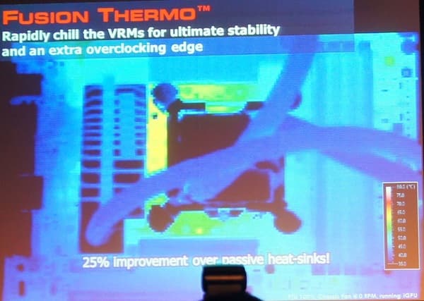 Такая активная система намного лучше справляется со своими обязанностями по охлаждению VRM, помогая при разгоне. Вот как выглядит плата при инфракрасной съемке.