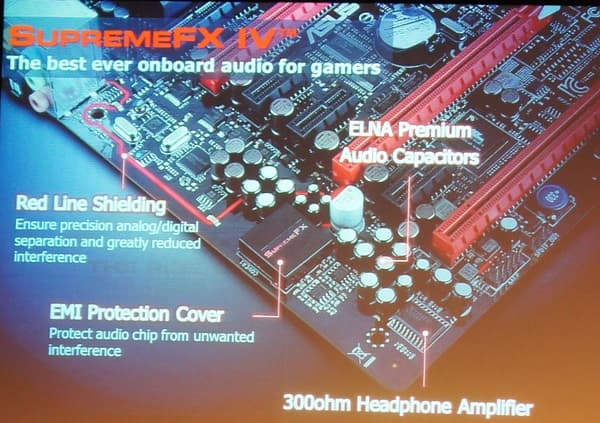 Для начала собравшимся журналистам рассказали об интегрированной звуковой подсистеме SupremeFX IV, которая используется и на ASUS Maximus V Formula.