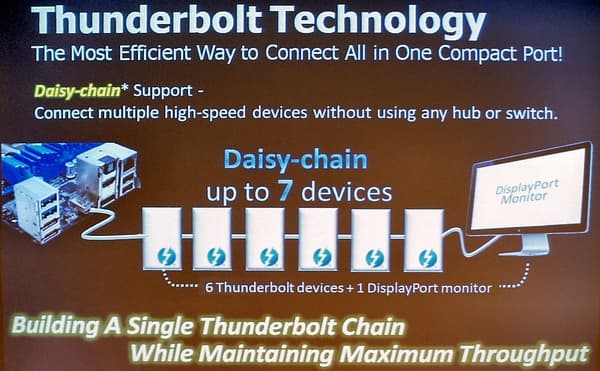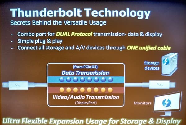 Первая техническая презентация была посвящена «новому и удивительному» интерфейсу Thunderbolt. После увиденного в первый день Computex столь сильный акцент уже не очень удивлял, но все равно — презентация почти целиком была посвящена именно интерфейсу и его возможностям.