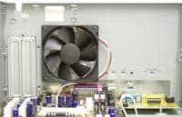Но мы отвлеклись. Хотя вентилятор и не создает излишнего шума, тем не менее — сразу на выброс. А то какой-же это компьютер мечты! Забегая вперед, сообщим, что блок питания не греется вообще, и эксплуатация системы с процессором Samuel 2 и жестким диском 5400 RPM без вентилятора не сулит никаких неприятностей. Более того, разница температур внутри корпуса и снаружи составила всего 7 градусов, при температуре окружающего воздуха 28 градусов.