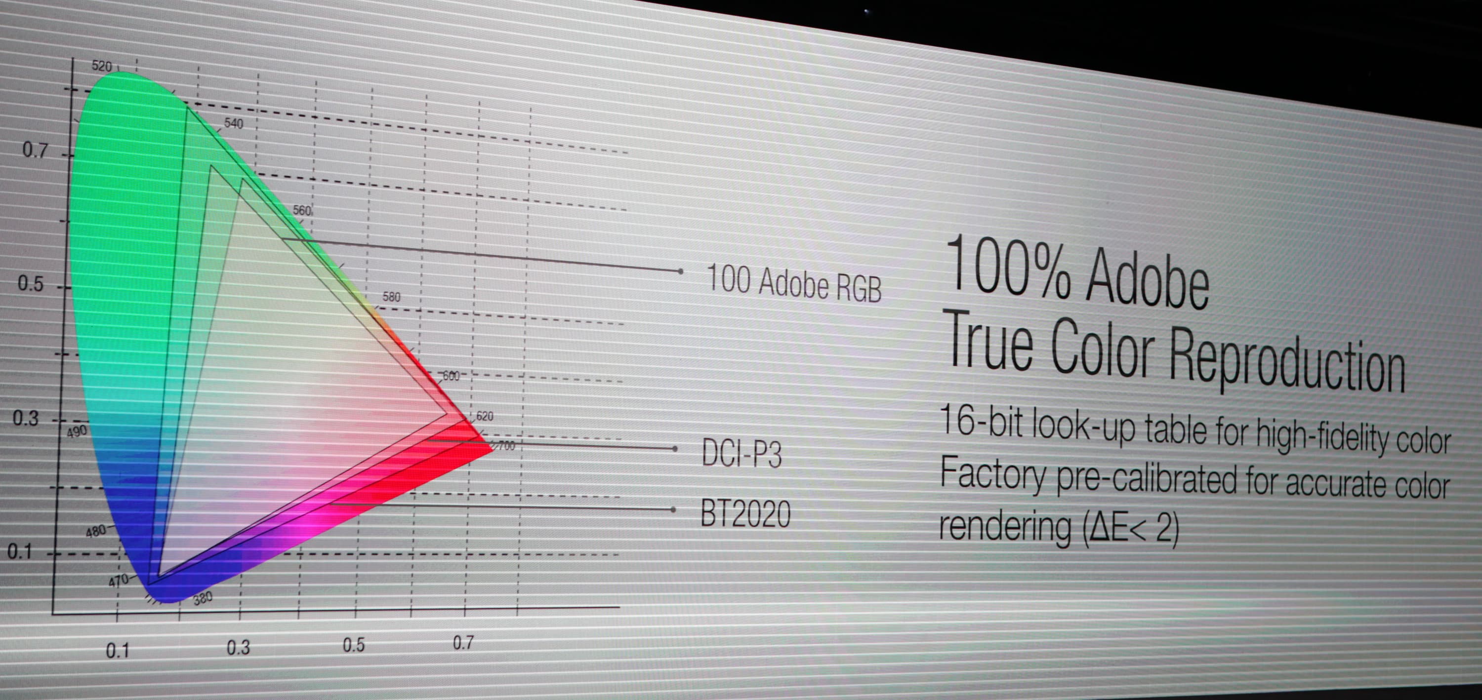 Этот монитор имеет разрешение 3840×2160, а его цветовой охват гарантированно составляет 100% Adobe RGB. В мониторе используется IPS-матрица, а углы обзора (горизонтальные) составляют 178 градусов. Мониторы Asus ProArt PA329Q проходят фабричную аппаратную калибровку, что позволяет обеспечить высокую точность цветопередачи (Delta E < 2).