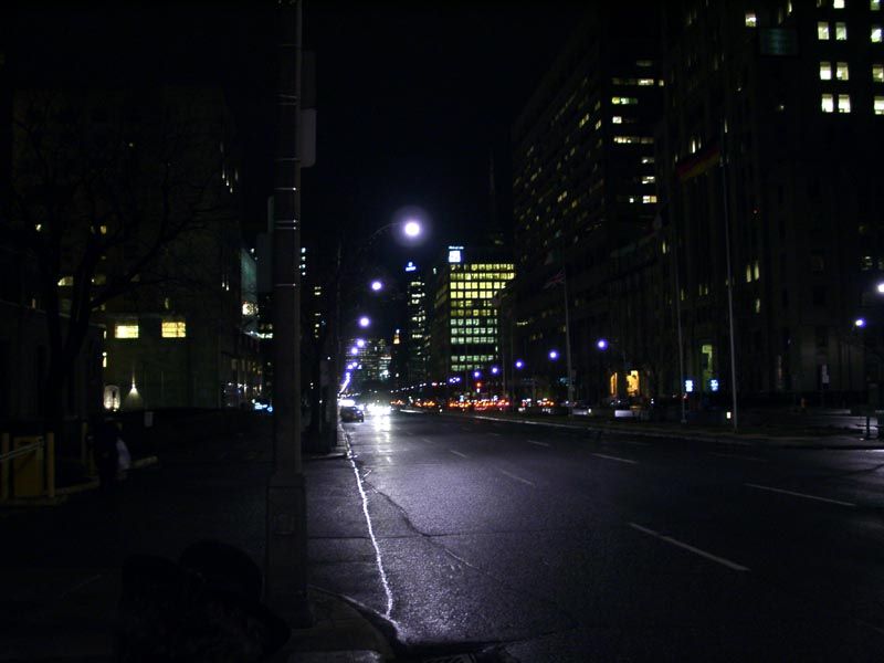 Продолжаем ночное путешествие. В блоке фотографий ниже: слева вверху — на одной из главных улиц центра города, где просто масса медицинских учреждений :). Справа — это был трамвай, ехавший довольно быстро, поэтому от него остались одни отблески. Слева внизу — перед зданием местного парламента провинции Онтарио. Справа — напоследок мы зашли в круглосуточно работающее кафе Tim Hortons (потом еще многократно будем встречать такие же заведения, эта сеть кафе, открытая знаменитым канадским хоккеистом Тимом Хортоном, развита столь же сильно, как и Макдональдс, однако если последний там котируется в основном среди детей, то первый весьма популярен у всех).