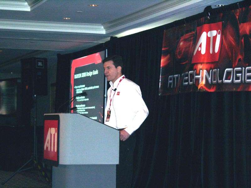 | Первым взял слово Крис Эвенден (Chris Evenden) — руководитель маркетингового сектора ATI, он собственно, и вел все мероприятие. | ![]() (Фотография в разрешении 800×600) |