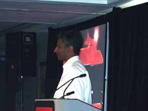 | Затем с докладом выступил старший вице-президент ATI по маркетингу (desktop) Рик Бергман (Rick Bergman) | ![]() (Фотография в разрешении 800×600) |