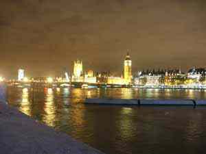 Итак, мы благополучно добрались до центра города. Уже темно, поэтому съемки имеют особый шарм. На снимке слева: знаменитые куранты с колоколом Big Ben (эта башня — часть здания Парламента страны). На снимке справа: то самое колесо обозрения, куда мы направляемся — London Eye.