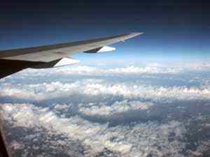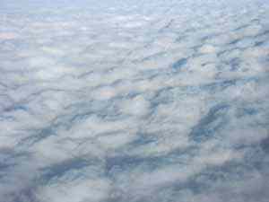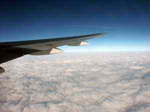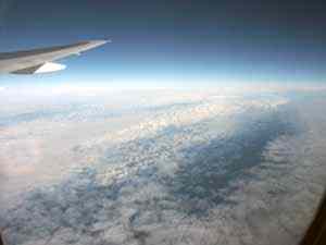 И все же весьма приятно лететь над облаками, где только солнце, и -50 градусов за бортом. Капли воды на окне снаружи тут же высохли, даже не успели замерзнуть.