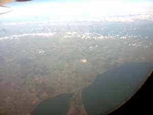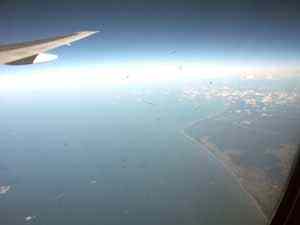 | Мы еще пролетали над неким городом, рядом с которым виднеется нечто белое, причем огромных размеров. Могу предположить, что это курортное место для горнолыжников с искусственным снеговым покрытием. Иных мыслей нет :) |