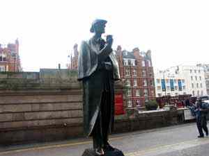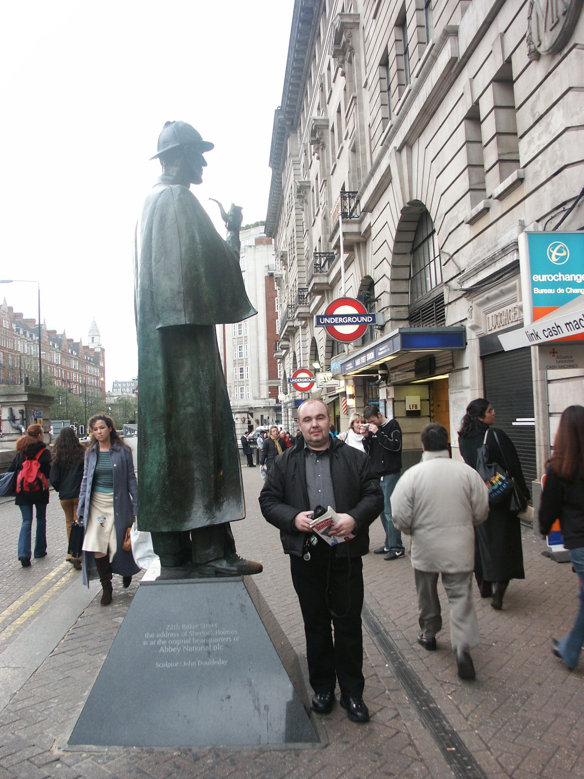 У выхода из метро сразу видим памятник Шерлоку Холмсу: