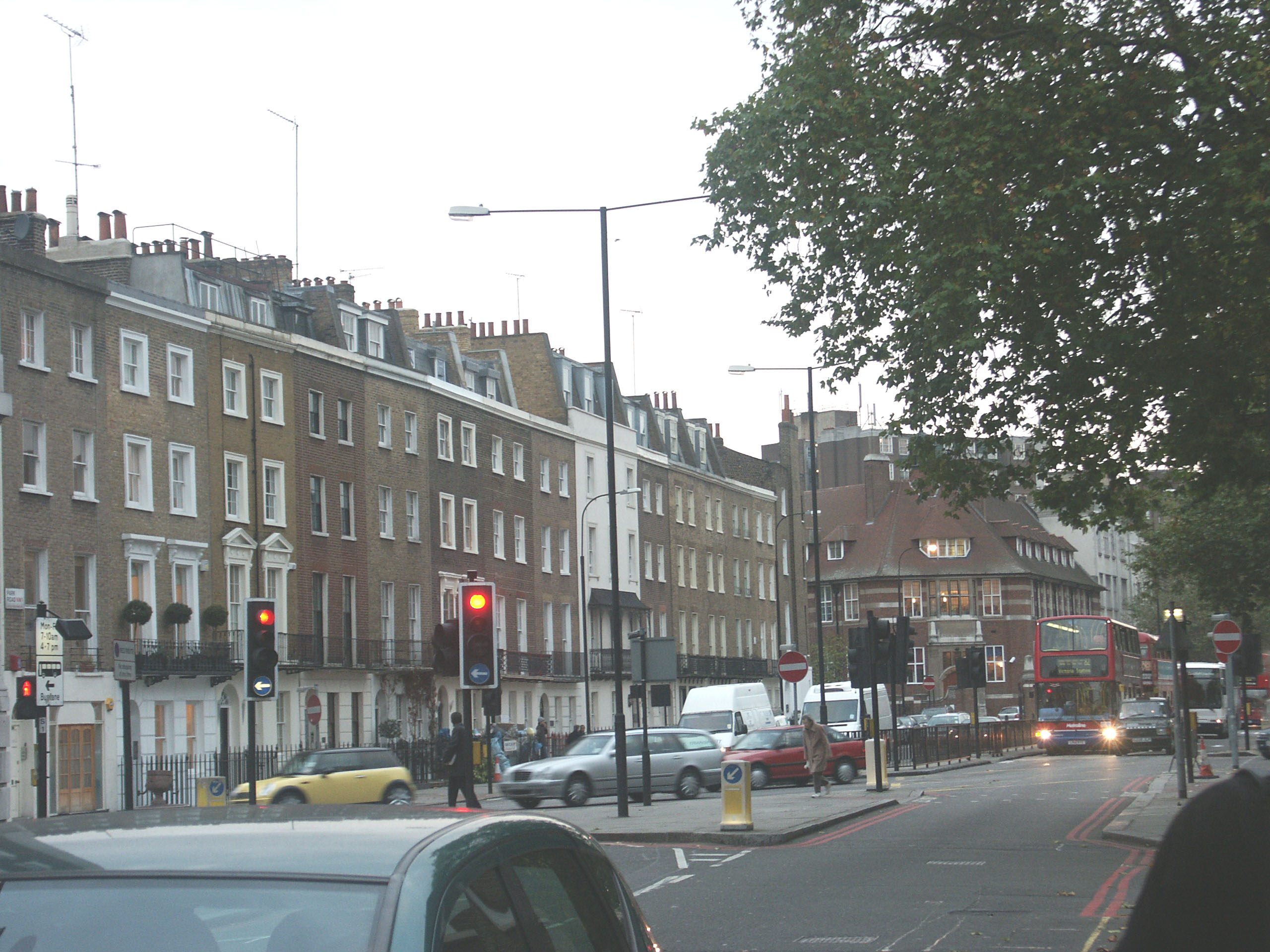 По этому шоссе мы потом поедем обратно в центр :) (ну почему мы не сели прямо в Гайд-парке? :) ). Уже видны знаменитые двухэтажные автобусы.