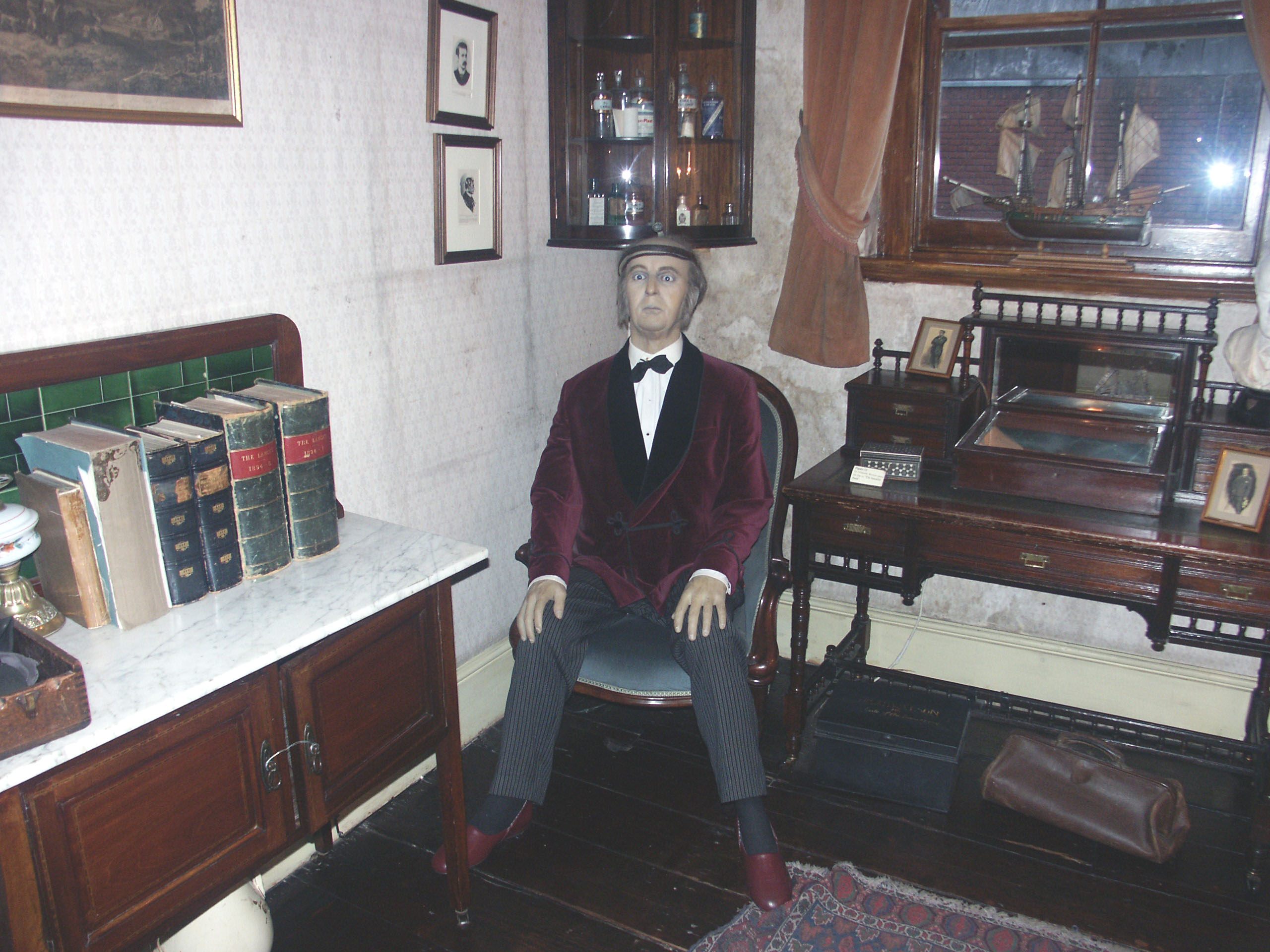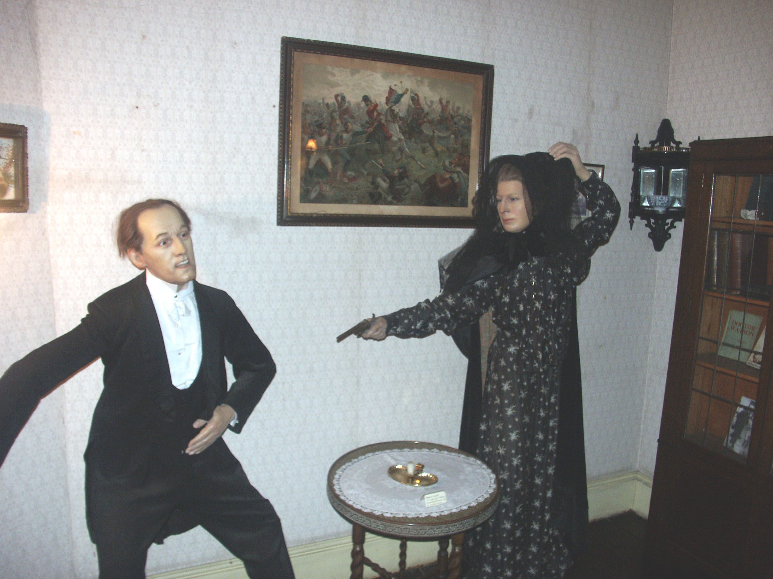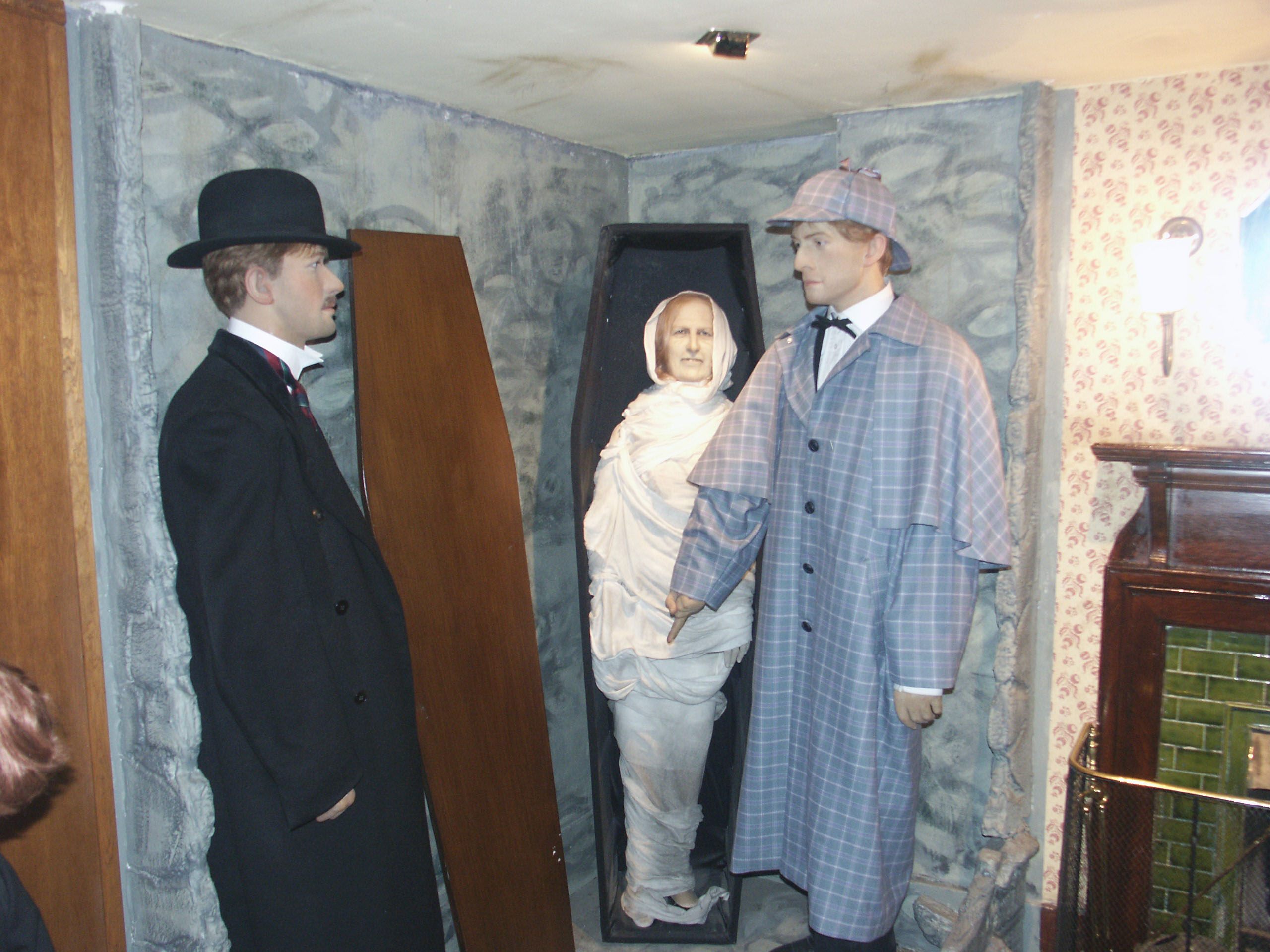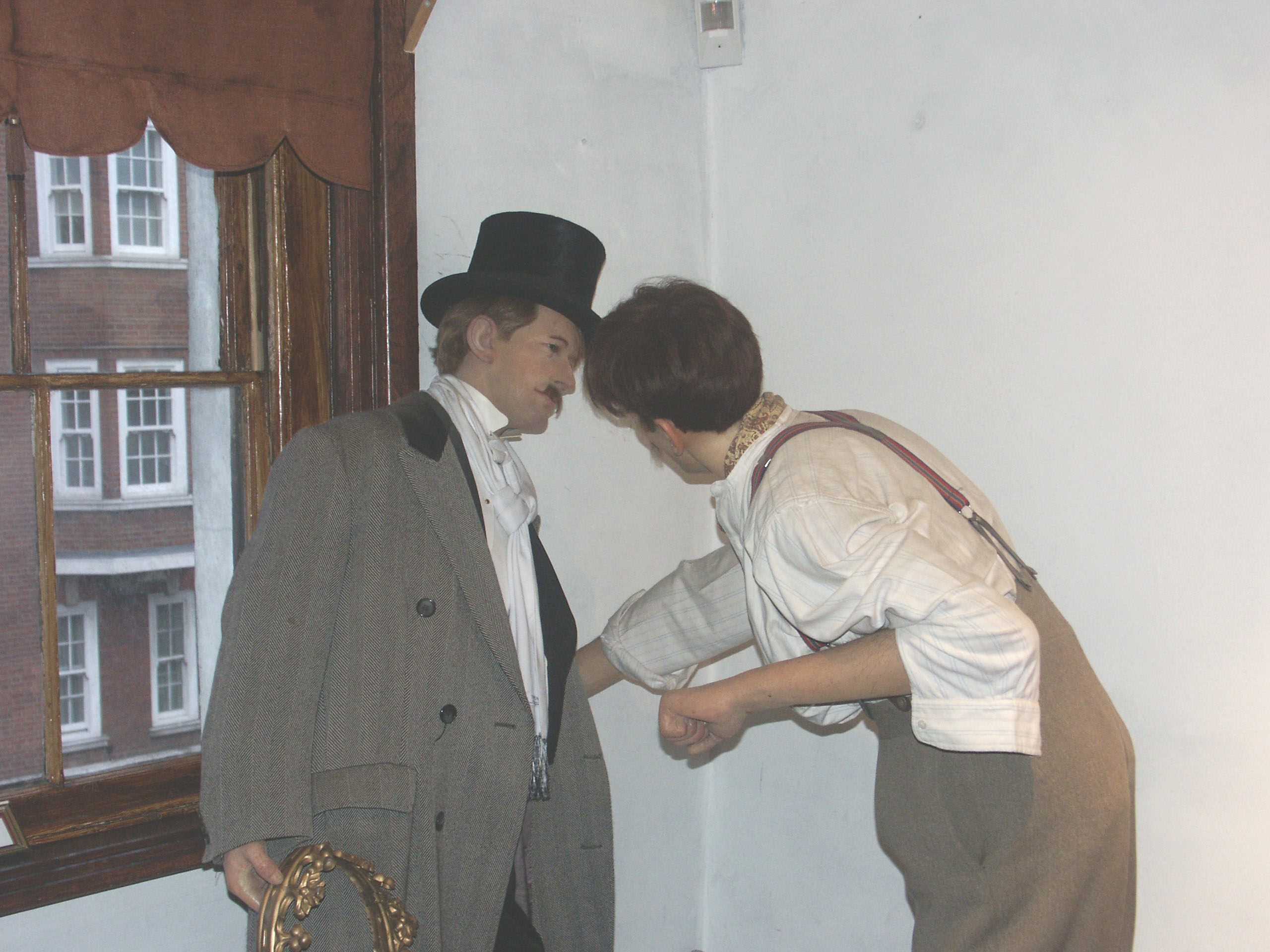 Комнаты, которые якобы принадлежали Холмсу и Ватсону, наполнены… нет, не людьми, хотя когда я вошел, то у меня так и вырвалось «Sorry», т. к. мне показалось, что кого-то задел — насколько эти восковые фигуры копируют людей. Просто подчас ужас наводят даже.