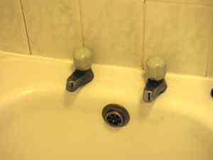 | Я слышал о том, что в Англии своеобразная система подачи воды, но вот теперь увидел ее сам: краны с горячей и холодной воды расположены раздельно, поэтому требуется наполнение ванны для каких-либо водных процедур. Точно также краны расположены и в раковине, но там хоть они рядом, поэтому у дна раковины, где струи соединяются, можно хоть руки помыть. |