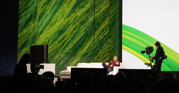 Выступление Стива Баллмера было построено в форме диалога, и помогал ему в этом известный ведущий американского телевидения Райан Сикрест (Rayan Seacrest). Они вели спокойную и неторопливую беседу (что, в общем, нехарактерно для Стива Баллмера, обычно он очень экспрессивен). Телесуфлер находился практически за нашими местами, так что можно было проконсультироваться, если чего-то не услышал со сцены.