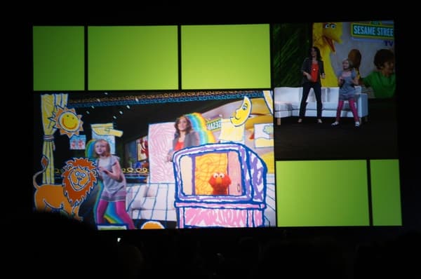 Однако это только первая часть новых возможностей Xbox 360. Второе направление развития — переход с одностороннего (просто просмотр видео) на двустороннее взаимодействие (т. е. интерактивное ТВ). Для демонстрации на сцену пригласили маленькую девочку с мамой.