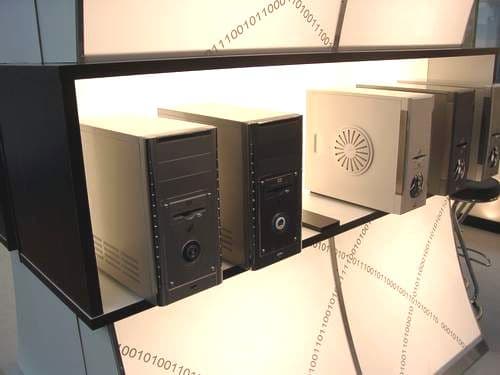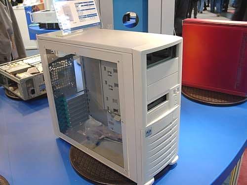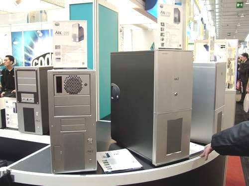 В этом году выставку посетило меньше людей примерно на 100-150 тысяч человек, чем годом ранее. Быть может, сыграло роль подорожание билетов, теперь одноразовый пропуск стоит около 35 евро, а постоянный 75. А возможно причина в рецессии, о которой так долго говорят, ведь и число выставляющихся компаний меньше. В компьютерной области спада пока не наблюдается, но рост незавидный, так что многим компаниям приходится ужимать бюджеты. Наряду с высокотехнологичными компаниями, исследования которых задают тон развития области на ближайшие годы, на выставке выставлялось множество небольших, преимущественно китайских и тайваньских фирм, демонстрирующих свои возможности. Ни в коей мере не хочу обидеть все компании из этих стран, среди них есть те, что создают прекрасные разработки, мы стараемся писать о них по мере сил. Но сейчас речь идет о том, что массовость означает дешевизну производства и простоту. Наверное, поэтому множество компаний демонстрировали свои решения в области корпусов для ПК и серверов, ими была буквально наводнена выставка. Сначала я пытался честно записывать названия компаний и их адреса, но затем понял, что это бесполезно. Все, кого заинтересуют модели с фото, смогут найти производителей, покопавшись в каталоге выставки, это достаточно просто.