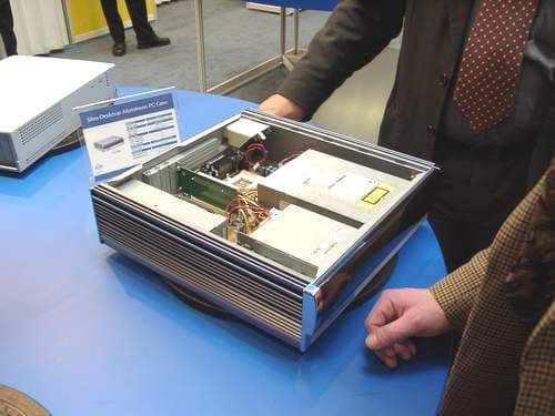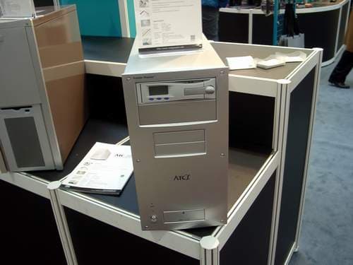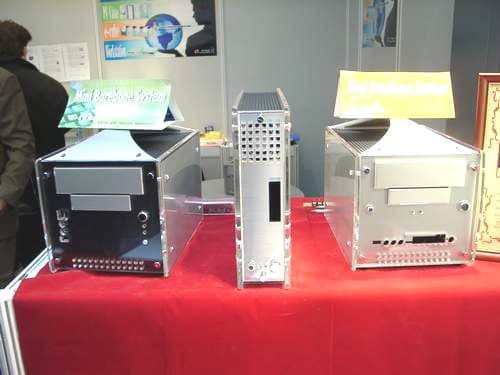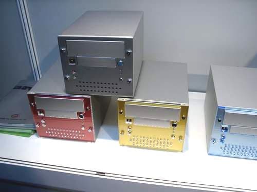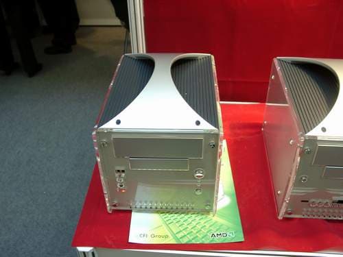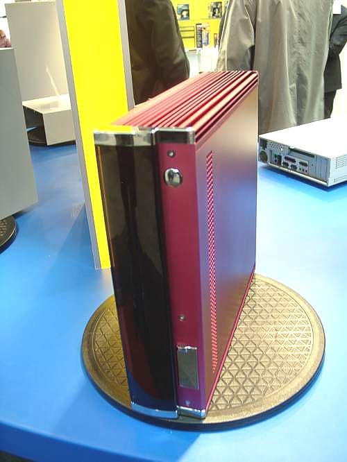 В павильоне, наводненном всевозможными корпусами, можно легко было принять за них Mini Barebone System под именем e-Cube. В принципе, за привлекательным корпусом скрывается современный ПК на основе процессора от AMD, что делает стоимость системы относительно невысокой. Есть подобные и большие системы, дизайн таков, что их уже, как чемоданчик не поносишь.