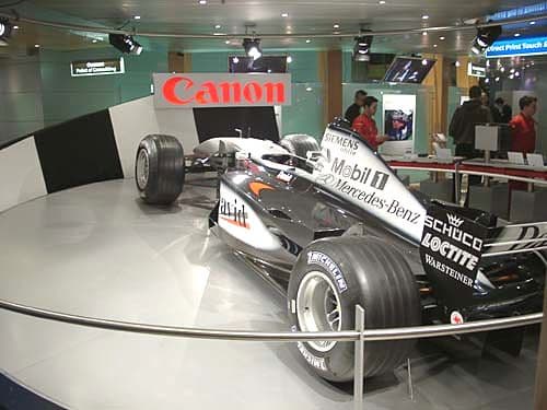 Многие компании показывали свою причастность к Hi-Tech тем, что выставляли на своих стендах гоночные болиды или просто автомашины.