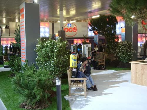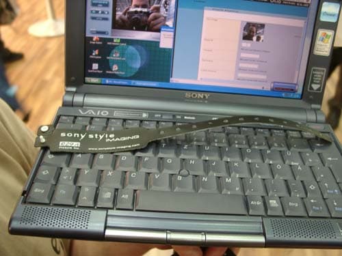 Кстати, эта же компания весьма нетривиально рекламировала свой новый ноутбук со встроенной камерой. По стенду ходила девушка с привязанным на палке ноутбуком, вы могли попросить сделать ваше фото, которое затем отправлялось сразу же по электронной почте с этого же ноутбука. Все это благодаря технологии Bluetooth. На всякий случай выдавался номерок, по которому можно было вручную получить свое фото на сайте компании.