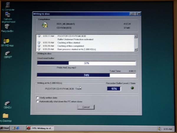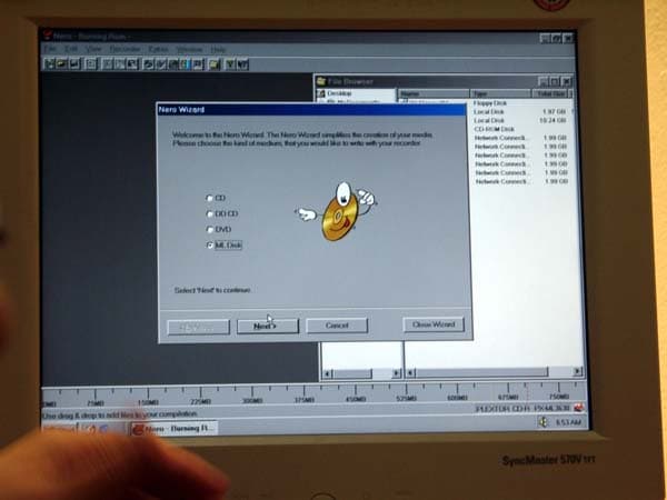 На специальном столике были установлены два работающих рекордера. На одном осуществляли запись, на втором демонстрировали чтение. Для записи использовалось программное обеспечение от Ahead. Да, да… всем известный Nero Burning ROM.