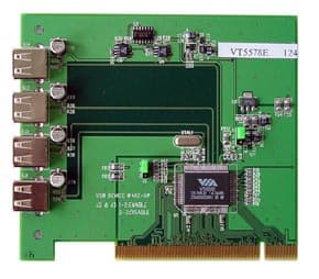 На презентации был представлен чип VT6202 и плата четырехпортового контроллера USB 2.0 от VIA на нем, а также чип VT6306, на основе которого возможно построение трехпортового контроллера IEEE 1394.