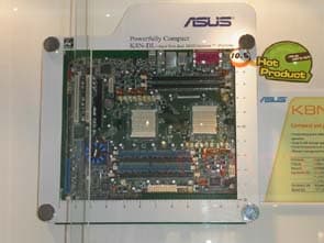 Значительное внимание было уделено плате ASUS на чипсете ATI Xpress 200 + ULI M1573 для процессоров Intel LGA775, вариация которой также демонстрировалась в рабочем режиме с подключенным встроенным ТВ-тюнером.