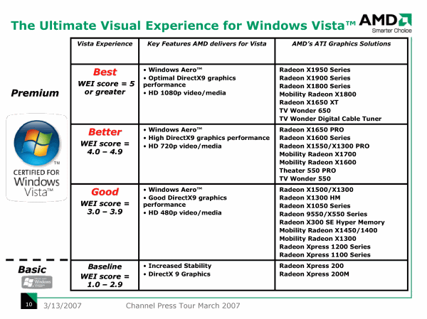 Любопытный слайд демонстрирует расстановку сил внутри нынешней графической линейки с точки зрения Windows Vista.