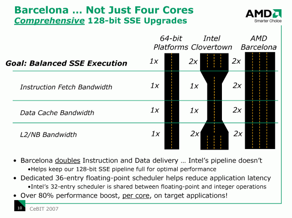 Помимо увеличения битности SSE-конвейера, AMD собирается повысить и эффективность доставки команд и данных на исполнение, что, в свою очередь, также должно положительно сказаться на общей производительности.