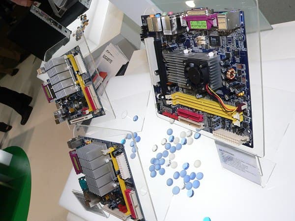Для встраиваемых и особо компактных систем, Gigabyte предлагает Mini-ITX платы с напаянными процессорами. Например, 7CN700ID на VIA C7 1,0 ГГц и чипсетом VIA CN700 имеет пару слотов DDR2-533 и напрашивается в конкуренты к протестированной нами MSI Fuzzy CN700, и Micro-ATX, например, 7CN896MH на чипсете VIA CN896, в качестве процессора имеющую VIA C7-D 1,5 ГГц, интересную тем, что помимо PCI-слота на ней распаян PCI Express x16.