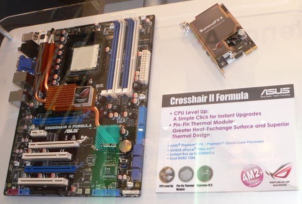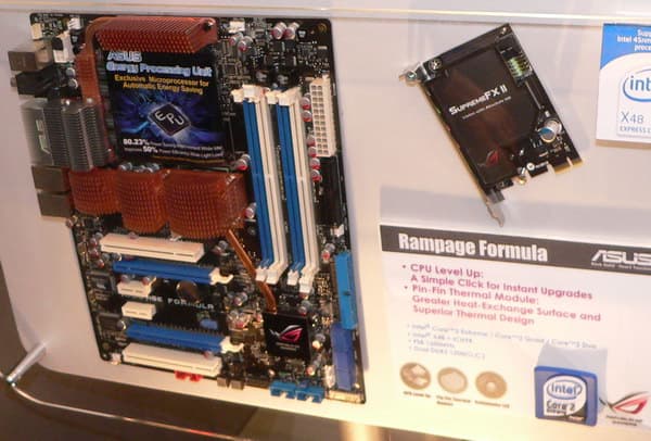 В первую очередь наше внимание привлекли новые жители «Республики геймеров», серии элитных плат ASUS, отличающиеся собственными именами. Первой такой платой была ASUS Crosshair на чипсете nForce 590 SLI и, как мы видим, с выпуском nForce 780a, обновленная версия получит именно такой чипсет. Maximus и Striker переведут на P45 и nForce 790i, соответственно, обе платы будут комплектоваться системой охлаждения для чипсета с теплообменником, предназначенным для подключения к водяной системе охлаждения. Наконец, самой дорогой станет Rampage на чипсете X48, здесь система охлаждения сохранит пассивный принцип, однако эффективность ее обещает быть довольно высокой благодаря оригинальной форме ребер у радиатора. Все платы имеют в комплекте карту Supreme FX II, на которой расположен аудиокодек, что позволяет гарантировать более высокий уровень качества, чем в случае с аудиокодеками, интегрированными непосредственно на плату. Еще одной общей для этих плат опцией должна стать CPU Level Up, обещающая пользователям автоматический разгон. Достаточно будет выставить желаемую частоту и остальные параметры будут подобраны автоматически. Какими именно параметрами и по какому принципу будет манипулировать автоматика, пока не известно, но мы непременно это протестируем, как только получим платы на тест.