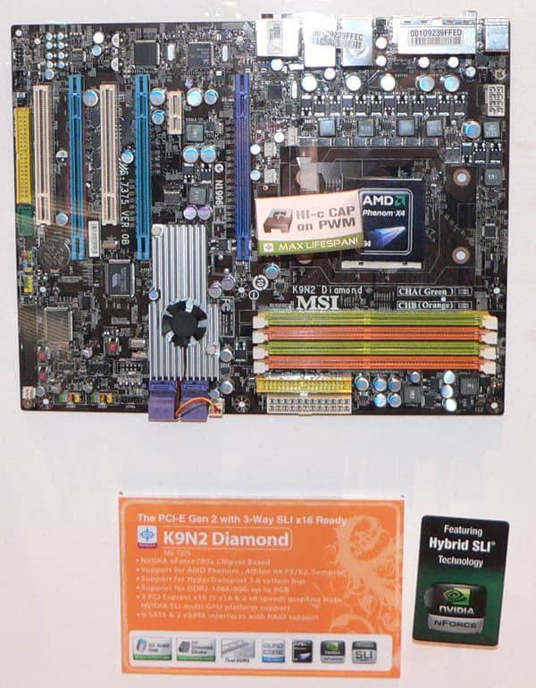Также серия Diamond этой весной пополнится платой на чипсете NVIDIA nForce 780a для платформы Socket AM2+, поддержка PCI Express 2.0 и 3-Way SLI реализованы, в остальном же плата выглядит весьма скромно укомплектованной, а в качестве звукового кодека использован недорогой Realtek.