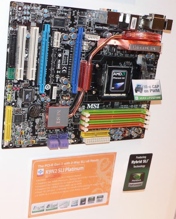 Cерия Platinum под Socket AM2+ будет удостоена чипсета nForce 750a с поддержкой SLI для двух видеокарт, в остальном комплектация не уступает предыдущей модели, ну а фирменной особенностью следует назвать поддержку 2 PATA-портов. Хотя этот вопрос уже не так актуален, поскольку оптические приводы с SATA-интерфейсом достаточно распространены, однако, наверняка найдутся те, кто оценят это решение MSI по достоинству.