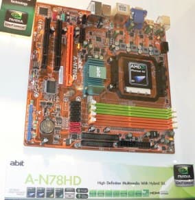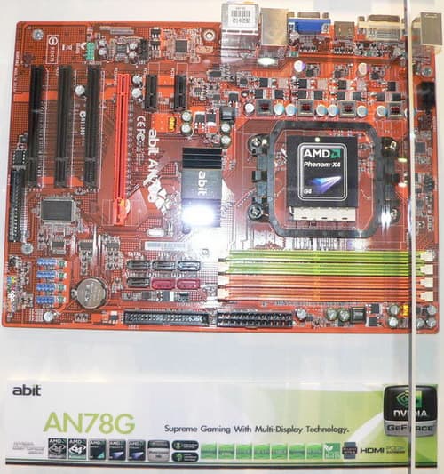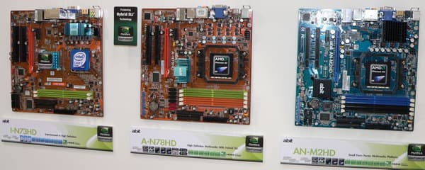 Но в abit рассудили, что может быть кое-кто из желающих согласен собрать себе медиацентр, до сих пор не может подобрать подходящую основу, и выделили в соответствующую экспозицию три платы, почему-то все на чипсетах NVIDIA: GeForce 7100, GeForce 8200 и GeForce 7050.