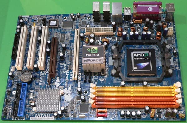Хотите чего-нибудь оригинального, но более практичного? Пожалуйста, полноразмерная плата на чипсете GeForce 8200, с полным комплектом видеовыходов, 4 PCI и 2 PATA. Есть ли у кого-то из других производителей такая же плата? Мы, по крайней мере, не видели.