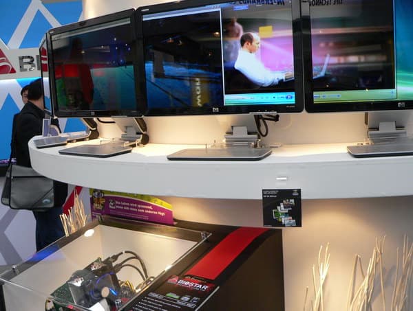 Также внимание на стенде привлекали «тонкие клиенты», встроенные в ЖК-мониторы.