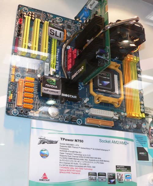 О новинках и тенденциях, обнаруженных во время посещения стенда Biostar, мы уже рассказывали в новости. Как уже отмечалось «изюминкой» модельного ряда выглядит Biostar TPower N750 на чипсете nForce 750a с поддержкой общей системы охлаждения для чипсета и видеокарты. За описанием менее впечатляющих, но никак не менее практичных новинок, отсылаем ко все той же новости, а здесь добавим несколько неотмеченных штрихов.
