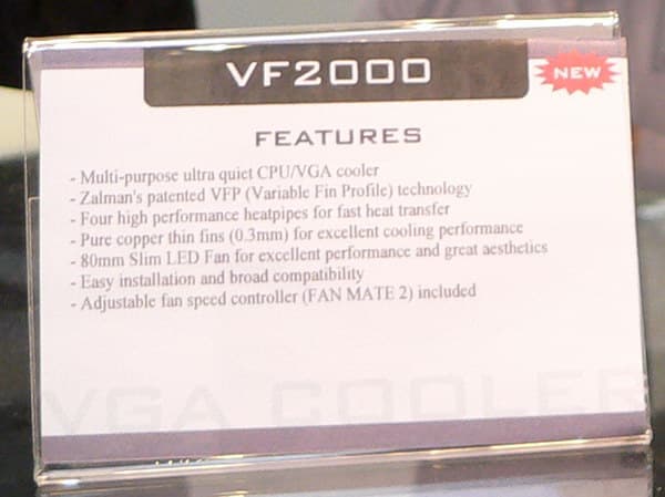 ...но и самостоятельных моддеров. Впрочем, кулер VF2000, судя по описанию, рекомендуется устанавливать не только на процессор видеокарты, но и на ЦП, если необходимо низкопрофильное устройство, места вокруг процессорного разъема на плате достаточно много, а процессор экономичен. Такая ситуация может сложиться, например, при сборке медиацентра в низкопрофильном корпусе.