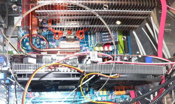 Система водяного охлаждения Aquagate Max обещает шуметь не громче 22 дБА, а отвести при этом обещает до 600 Вт тепловой мощности. Ясно, что в контур такой системы стоит включить теплообменник не только для процессора, но и, как минимум, на графических чипах видеокарт.