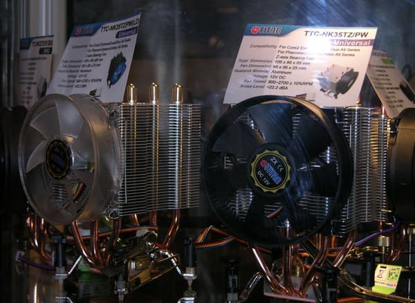 На стенде Zalman мы обнаружили новинки не в высоком классе, а среди относительно недорогих моделей, не имеющих тепловых трубок. Все новинки являются удешевленными версиями хорошо знакомых пользователям кулеров. Причем бросающихся в глаза признаков упрощения не видно, очевидно, просто сэкономили на материале, а насколько это скажется на эффективности, покажут тесты.
