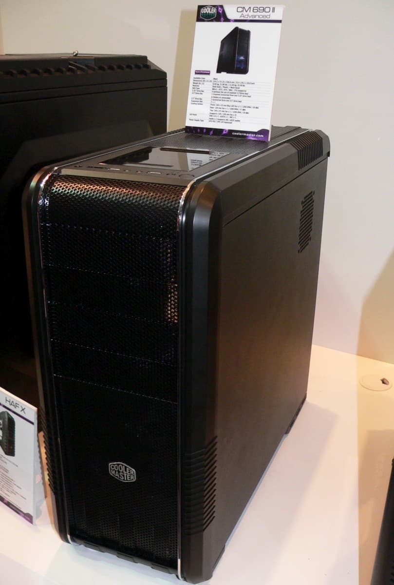 Компания Cooler Master для своей заглавной модели в линейке под названием HAF X выбрала на этот раз подчеркнуто угловатые формы, которые должны намекать на военную технику и, вероятно, в большей степени наземного применения. Геймерам такие мотивы должны прийтись по вкусу. Оснащение, как и следует для моделей такого класса, исчерпывающее: три 200-миллиметровых вентилятора на верхней, передней и боковой стенках и один диаметром 140 мм — на задней стенке. Этого должно хватить для надежного охлаждения конфигурации, собранной на плате формата вплоть до расширенного ATX, 6 накопителей в 5-дюймовых отсеках и 5 — в 3,5-дюймовых. Дополнительно надо упомянуть, закрывающуюся шторкой, кнопку питания.