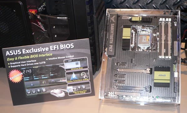 В ряду системных плат на этот раз наблюдалось относительное затишье. К примеру, любопытная своей теплоотводящей броней Sabertooth P67, также способная похвастать графическим интерфейсом BIOS, в действительности уже давно готова к продажам. И лишь очередной дефект, обнаруженный в чипсетах Intel, вызвал задержку в поставках как этой, так и других, плат на чипсетах под Sandy Bridge.