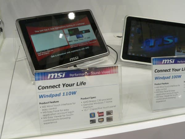 Планшет WindPad с 10″ экраном с отличной обзорностью во всех плоскостях (IPS-матрица). Судя по демонстрации, способен не только поддержать Windows 7 Home Premium, но и бодро крутит 6 Java-приложений одновременно. Плата в данном случае, очевидно, специальная, процессор AMD C50 также двухъядерный, но с тепловым пакетом 9 Вт (E-350 — 18 Вт), главным образом за счет менее производительного графического ядра. Очень приятно, что планшет имеет дополнительный манипулятор наподобие джойстика, так что возить пальцем по экрану — не единственный способ взаимодействия.
