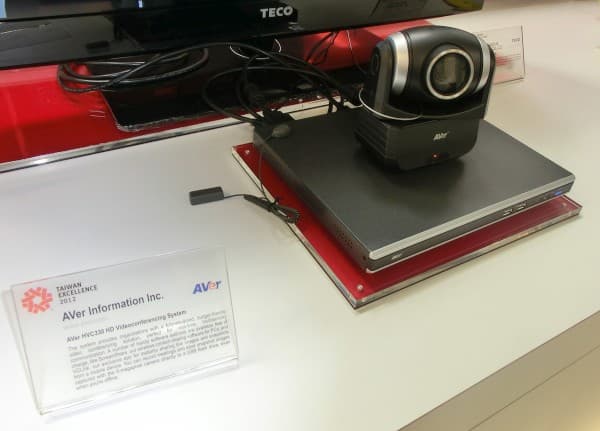 Продвигаясь в сторону более серьезных гаджетов, попадаем на стенд известнейшей в среде компьютерных телезрителей компании AverMedia, ныне просто AVer. Когда-то и я еще смотрел футбол с эфирного телевидения, и где-то даже лежит PCI-плата ТВ-тюнера — разумеется, «аверовского» — эх, были времена! А сейчас эта компания в большей степени ориентирована на устройства для проведения видеоконференций, интернет-телефонии и видеонаблюдения. HVC330 — это система по принципу «все в одном», позволяющая не только проводить видеоконференции с «нестыдным» качеством благодаря 5-мегапиксельной матрице, но и делать запись трансляции.