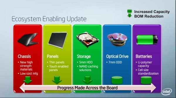 Между тем, компания Intel собрала пресс-конференцию, на которой сообщила о своей всемерной поддержке и заинтересованности в развитии всей компонентной базы ультрабуков. Мне лично кажется давно назревшим пункт относительно литий-полимерных батарей. Я пользуюсь такими батареями в мобильных телефонах уже примерно лет десять (именно такие стоят в приобретаемых мной исключительно «немодных» моделях), и в дополнительной рекламе они не нуждаются. Например, в недельную поездку зарядку с собой можно смело не брать, и служит такая батарея зачастую дольше телефона. Однако массовыми по-прежнему остаются недолговечные литий-ионные. Почему? Может быть, производителям банально выгодна эта самая недолговечность?