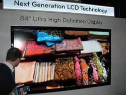 Sharp в своей экспозиции упирал на новое слово в ЖК — четвёртый цвет. Жёлтый.