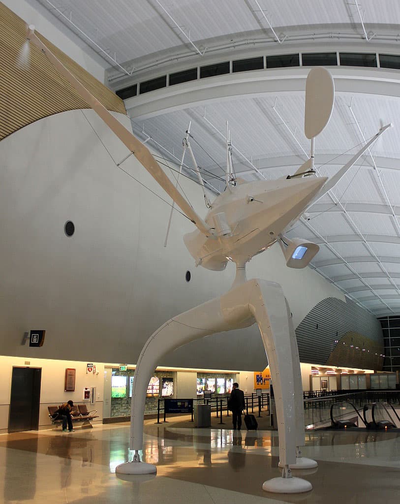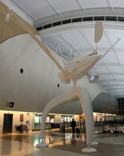 В последнее время принято начинать такие статьи с дорожных впечатлений. Ну, что ж, поехали, но кратко. В отличие от аккредитованных журналистов компании iXBT.com, летающих из Москвы, аккредитованные инженеры, играющие роль внештатного корреспондента, начинают свой путь в Лас-Вегас из Кремниевой Долины, где их из нового аэропорта провожает в путь вот такое чудо: