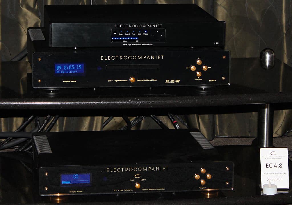 Ну, а пока расслабимся в окружении качественного звука в другой комнате. Компания из Норвегии Electrocompaniet. Народу там не было, так что я с удовольствием расположился на диване и утонул в музыке, излучаемой вот этими колонками: