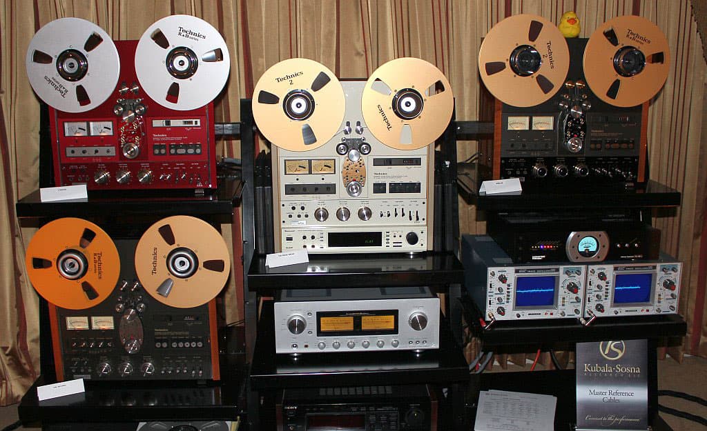 Вот она, казалось бы, уже мёртвая технология, о которой я говорил выше. Но нашлись люди, которые рискнули попробовать её возродить. Да, конечно, рынок не настолько велик, как это было лет 15-20 назад, но оказывается, достаточно стабилен для небольшой компании. На корпусе и катушках видно название Technics, но табличка над комнатой, где они располагались, явно имела другое имя, иначе оно запомнилось бы. Видимо, производят по лицензии, которая сегодня на аппаратуру такой направленности не должна стоить слишком дорого.