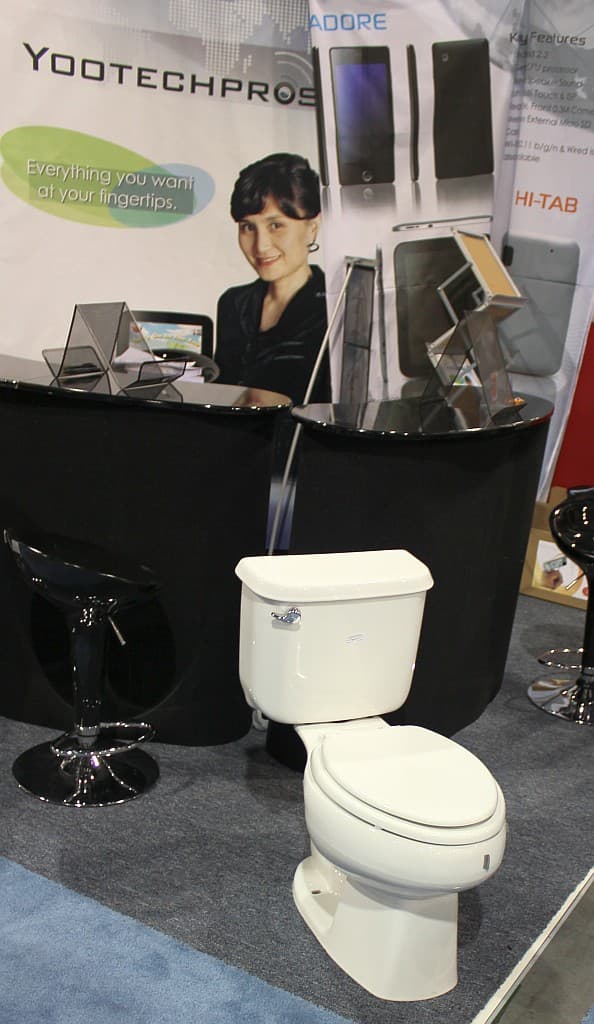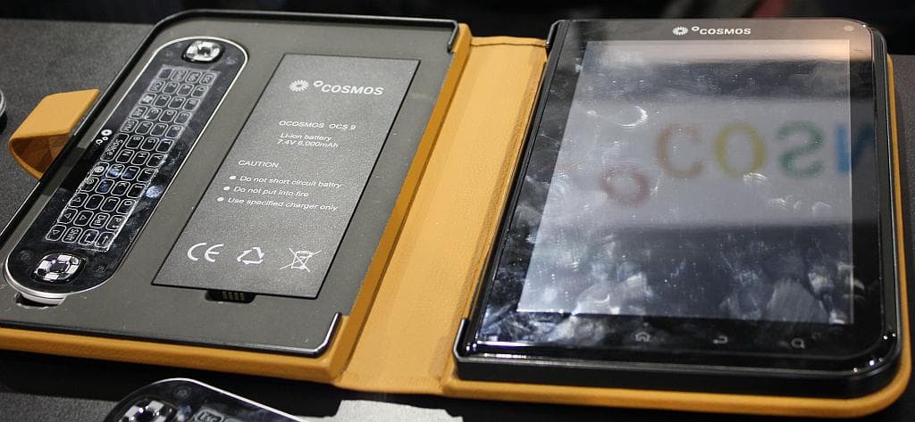 Планшеты… Apple своим iPad показал всем совершенно невозделанный участок потребительского рынка. К этому никто даже не был готов. Поток новостей о планшетах в прошлом году был сравним с ниагарским водопадом. А перед открытием выставки их количество было таким, что, казалось, выставка будет просто погребена под горой планшетов. Результат? Довольно много, иногда в неожиданных местах, но не так, чтобы от них некуда было яблоку упасть. О планшетах известных брендов известно почти всё, так что посмотрим, что предлагается всемирной кузницей всякой электроники. Среди них встречались решения с изюминкой. Например, компания оCosmos ориентируется на игроков, не желающих расставаться со своими привычками ни на минуту:
